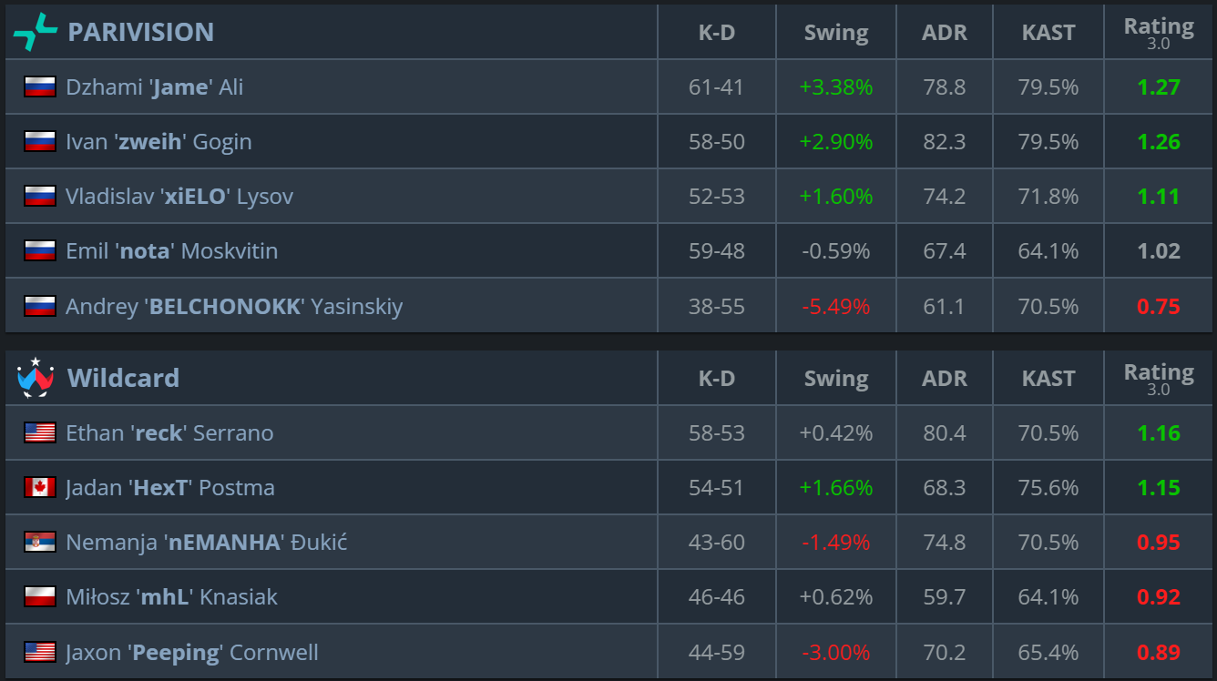 Danach spielte das Team mit mehr Selbstvertrauen auf Dust2 und ließ den Gegner nicht in ein Entscheidungsfinale ziehen. Infolgedessen zog PARIVISION in die Playoffs ein, während Wildcard seinen Turnierlauf beendete.
