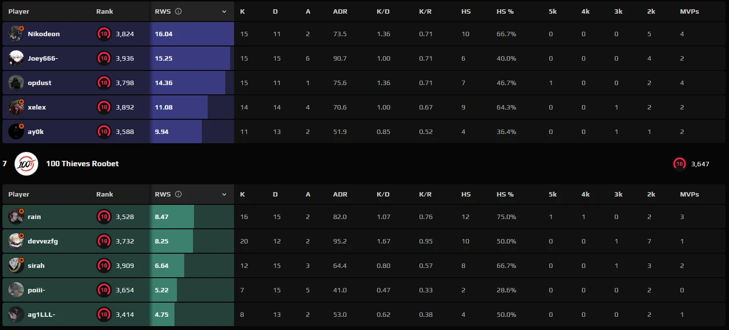 100 Thieves showed moments of individual impact. Dewezg and rain tried to keep the team competitive with raw firepower. Those efforts, however, did not change the outcome.
