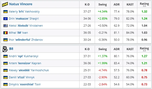 • Natus Vincere slightly improved their ranking after defeating B8, gaining +6 VRS points.