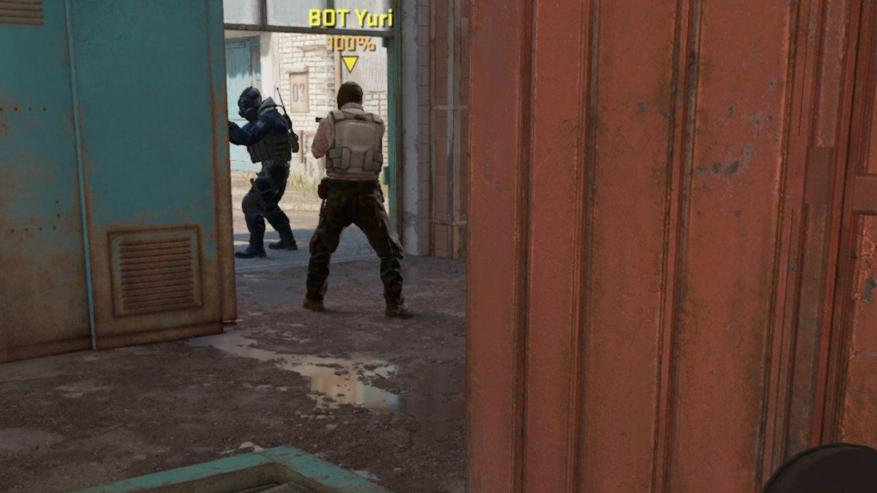 As you can tell I put BOT Frank on the barrel, but he doesn’t show in the reflection of the window. Is this a big deal? Not really, would it change a lot if the player model was reflected? Probably not in this exact case, but I think over time if we started designing maps to incorporate small areas where it was a factor, it could add some very interesting dynamics that lean on already existing gameplay mechanics, just stretched a bit further.