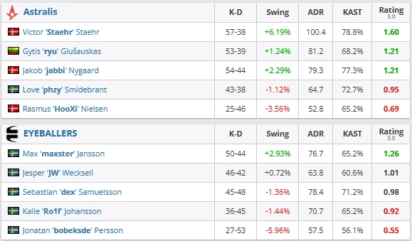 This series highlighted the difference between a contender and a developing team. Astralis, despite a shaky start, adapted and took full control when it mattered most. EYEBALLERS showed promise and fighting spirit, but lacked the consistency to close out a series at this level. As the playoffs continue, Astralis look ready for a deeper run — while EYEBALLERS leave the tournament with valuable experience.
