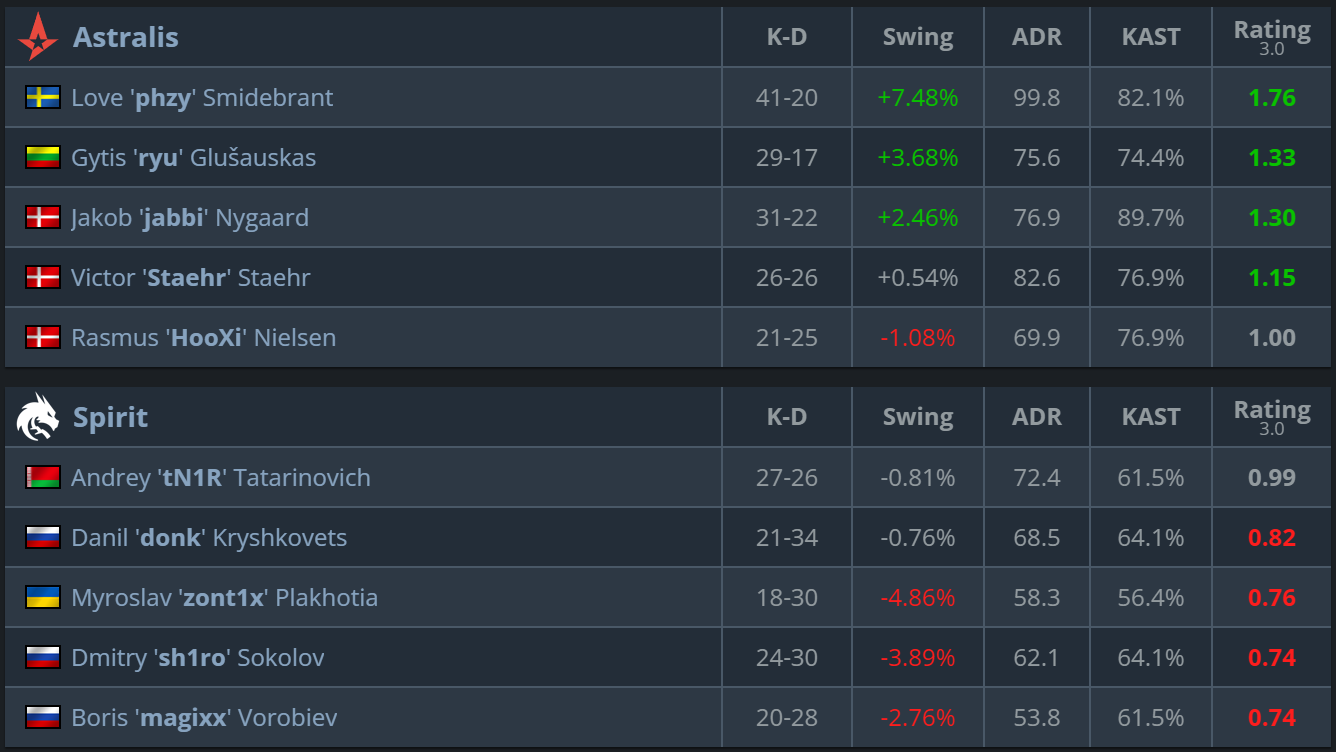 Astralis demonstrated confident and disciplined play in the quarterfinal. The team controlled the pace of the series on both maps and did not allow Spirit to impose their style of play. Thanks to this victory, the Danish squad advances to the semifinals of ESL Pro League Season 23 Finals, while Spirit end their tournament run in Stockholm.
