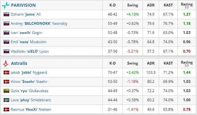 PARIVISION answered on their pick with a confident Dust2 performance. Faster pacing and sharper entries allowed them to pressure Astralis’ defenses, while strong individual moments kept the map competitive deep into regulation. PARIVISION edged out a 16:13 win, exposing Astralis’ occasional struggles when forced into reactive play.