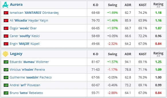 The deciding map Dust2 delivered another close battle. Aurora started confidently with strong mid control and several impactful rounds from XANTARES, who repeatedly found key duels around short and long. However, Legacy once again refused to back down, with dumau continuing to dominate the server and keeping the Brazilian side within striking distance.