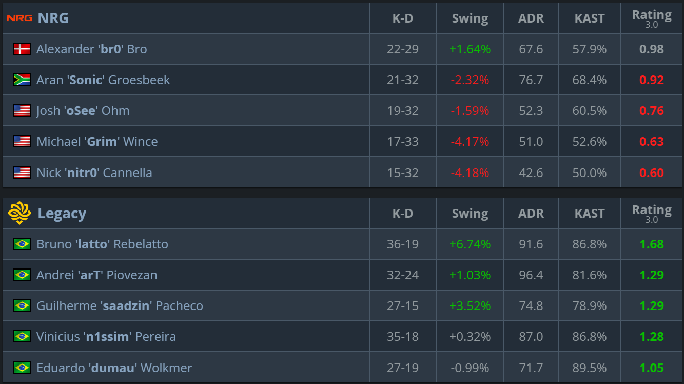 Legacy opened the series very confidently on their own pick. The Brazilian roster quickly took control of the pace of the game, handled the key rounds more consistently, and did not allow NRG to find any footholds for a return to the map. - Inferno (NRG’s pick) — 13:6