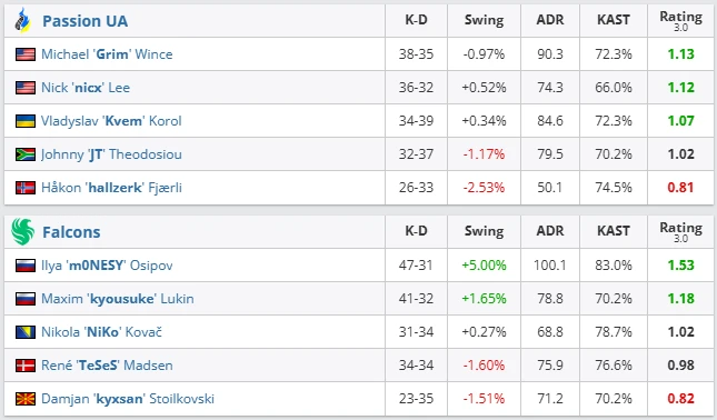 Passion UA came into this match after a historic upset, but Falcons were a different challenge. The European favorites showed their most stable and structured Counter-Strike. Train, picked by the Ukrainians, kept some intrigue. Grim had several impactful plays. However, Falcons read the timings perfectly and shut down every attempt to break their setup. kyxsan controlled rotations, and m0NESY delivered a stellar 1.53 rating. Mirage decided everything. Falcons used the same sharp tempo that previously crushed Spirit, OG and TYLOO. Passion UA could not find answers to NiKo’s aggression or kyousuke’s mid control.
