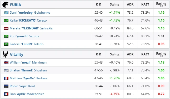 VRS: FURIA +11 pt (#1), Vitality –16 pt (#3)