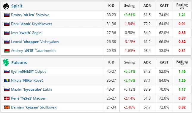 Spirit 0–2 Falcons — m0NESY and NiKo deliver a masterclass