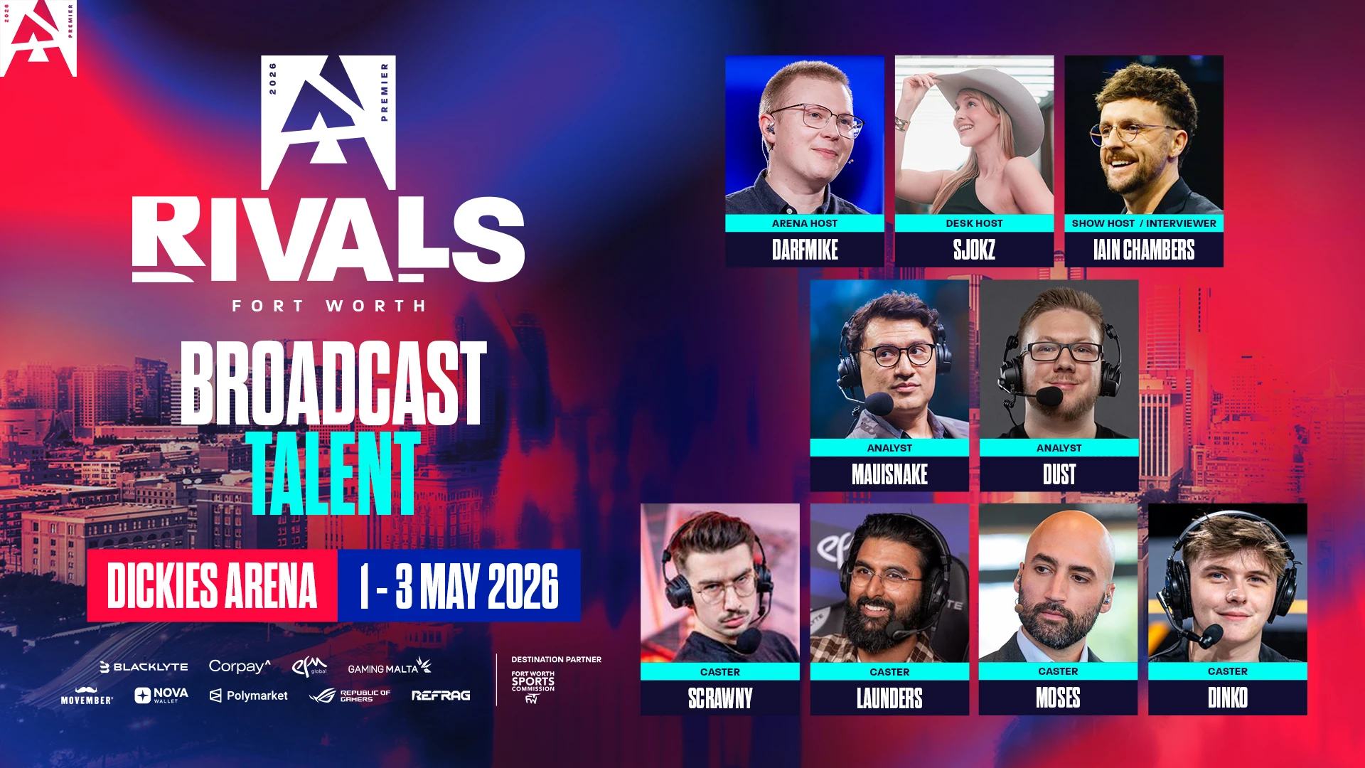 BLAST have officially revealed the full broadcast talent lineup for the first Rivals event in Fort Worth, set to take place from April 29 to May 3 at Dickies Arena. A nine-person on-air team will guide viewers through the tournament, covering everything from stage hosting to in-depth desk analysis. As expected, the lineup blends established BLAST regulars with well-known North American voices, creating a balanced and experienced broadcast team.