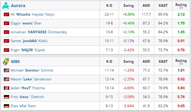 Turkish dominance and a monstrous performance from Wicadia Aurora are marching through the Major like a tank. The team shut down M80 by seven rounds — and did it with the confidence of a squad playing a warm-up rather than a Swiss opening match. Wicadia delivered one of the best Bo1 performances of the tournament so far: sharp duels, consistent round openings, and explosive aggression on long and mid. M80 tried to slow the pace, but every attempt was instantly shut down by XANTARES and woxic, who locked down the defense together.