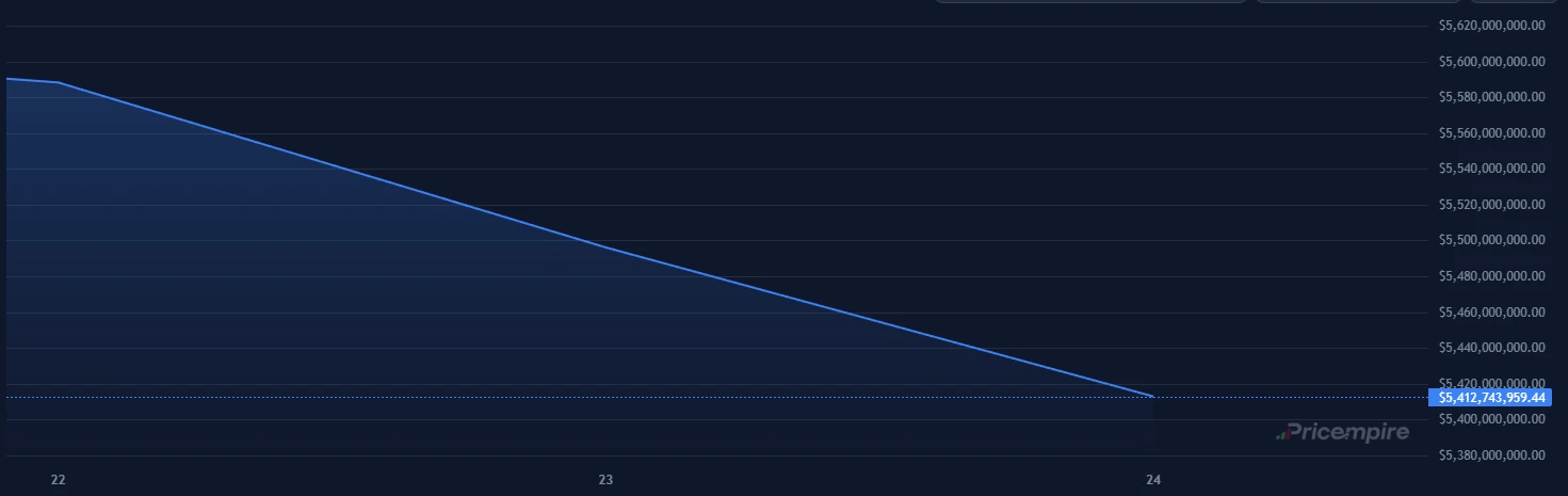 According to the latest data, prior to the update the overall market capitalization stood at around $5.58 billion. Within the following 48 hours, that figure fell to approximately $5.41 billion, representing a loss of roughly $160–170 million.