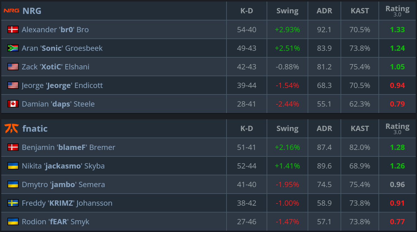 NRG found their rhythm early and heavily punished fnatic’s weak T-side, securing a confident start to the series.