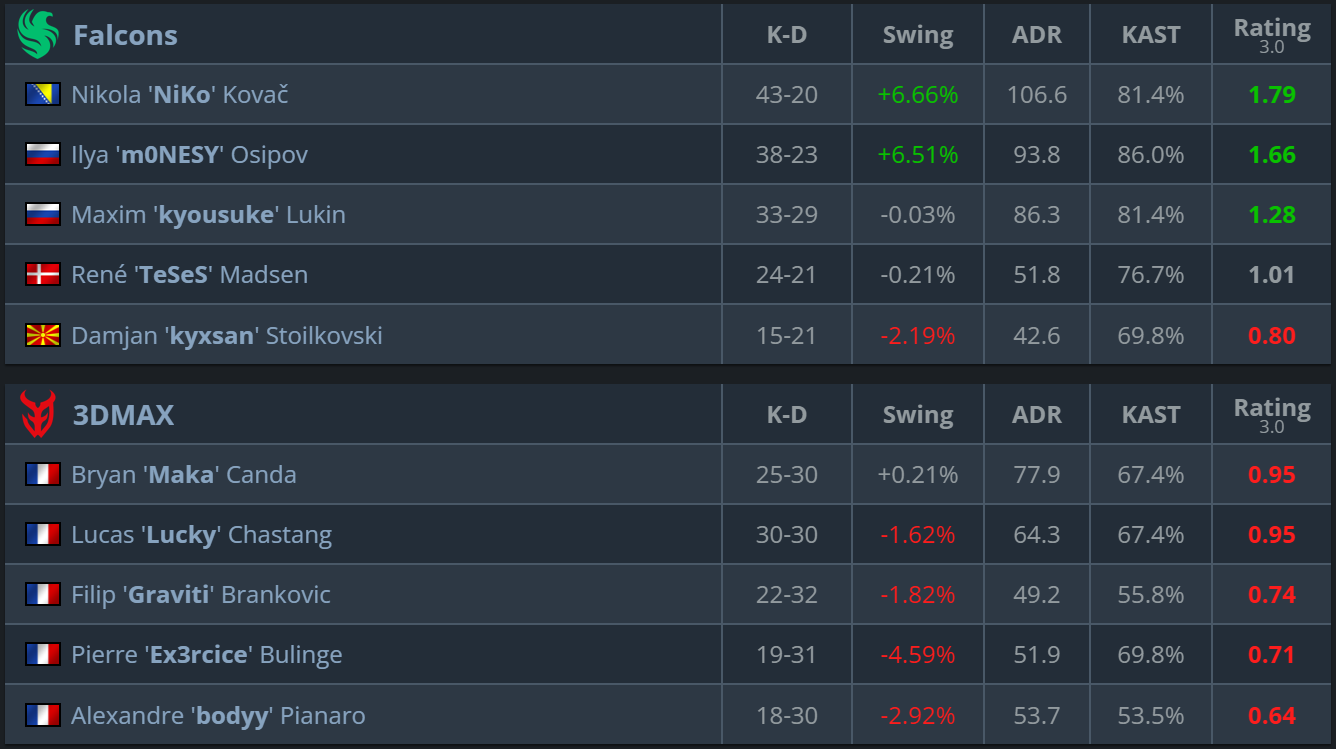 On their own pick, Falcons looked less dominant but retained full control of the match flow. 3DMAX attempted to force frequent aim duels and kept the scoreline competitive, yet key rounds and clutch situations consistently favored the tournament favorites.