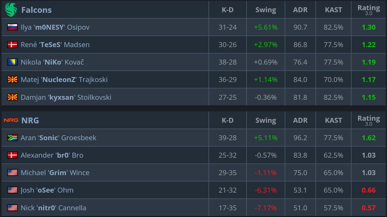 On their own pick, Falcons looked even more confident. The team controlled the pace, won the majority of opening duels, and never allowed NRG to get back into the match. Dust2 became a logical conclusion to the series without unnecessary suspense.