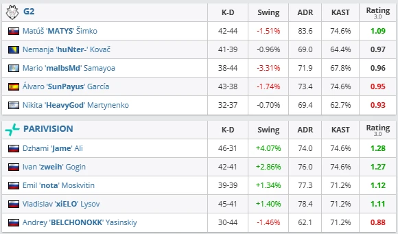 PARIVISION responded with structured CT setups on Inferno. Jame’s calling slowed the pace, denying G2’s explosive executes. zweih and xELO found key opening duels that shifted the economy in their favor.