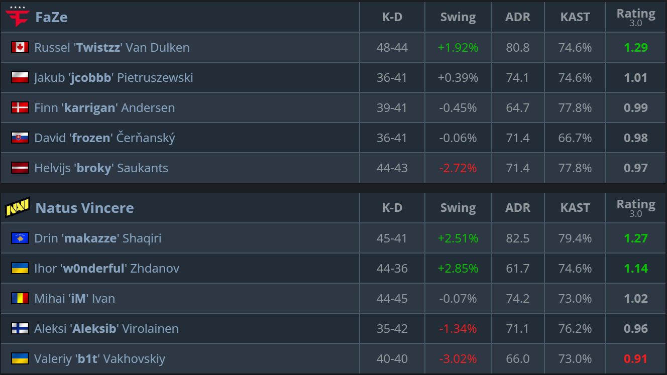 FaZe significantly improve their position in the global rankings, closing the gap to the top teams. For NAVI, the loss means dropping important points and ending their run at the semifinal stage.