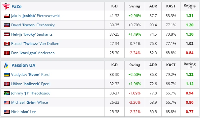 FaZe played disciplined, structured Counter-Strike, winning the majority of key duels and maintaining full control of the economy. They denied Passion UA any meaningful streaks, constantly pressured weak spots, and adapted to their opponent’s style with precision.