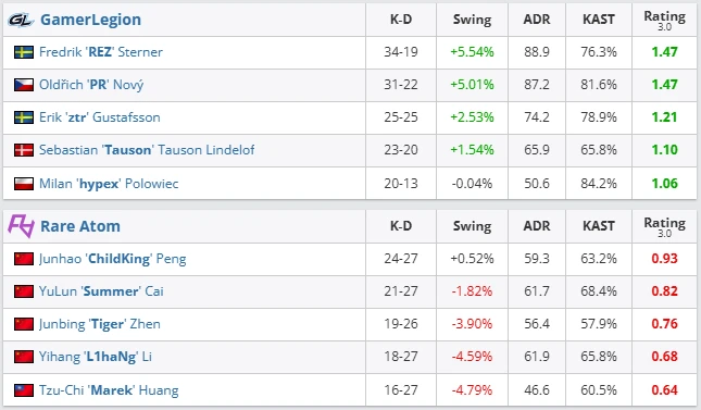 • Rare Atom lost the majority of 4v3 situations, failed to convert good economy rounds, and often gave away deaths without any contact.