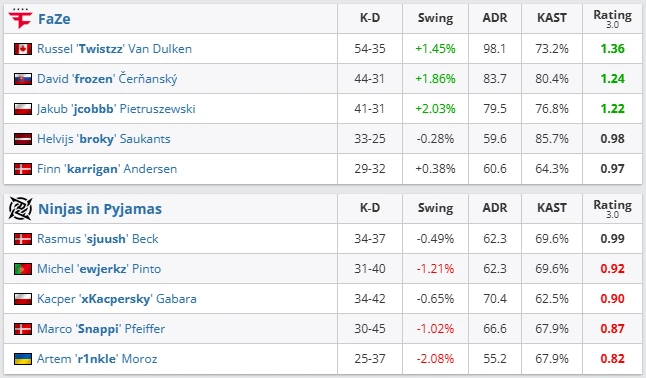 FaZe advance to Stage 3, gaining two opportunities to reach the playoffs. NiP fall into the 2–1 pool, where any mistake could cost them their run in the group stage.