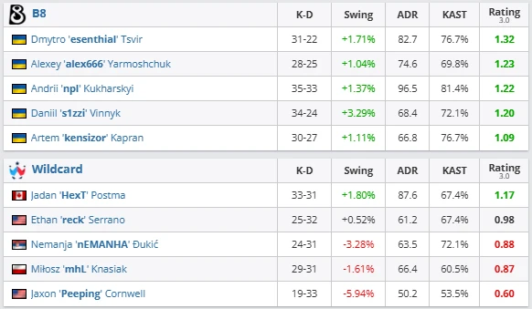 His consistency and control in key moments allowed B8 to maintain their advantage throughout the series. npl (1.22) and alex666 (1.23) also delivered strong performances, ensuring stability across both maps. Wildcard, on the other hand, looked disconnected — often losing mid-round control and failing to convert their opportunities.