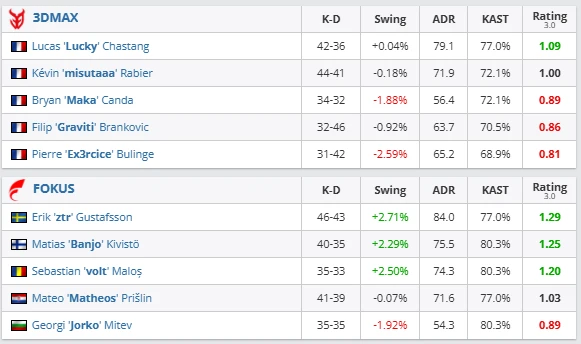 On their own pick, FOKUS immediately took control. They won opening duels, controlled the map well, and prevented 3DMAX from executing their standard game. The French side looked slow and struggled to hold positions.