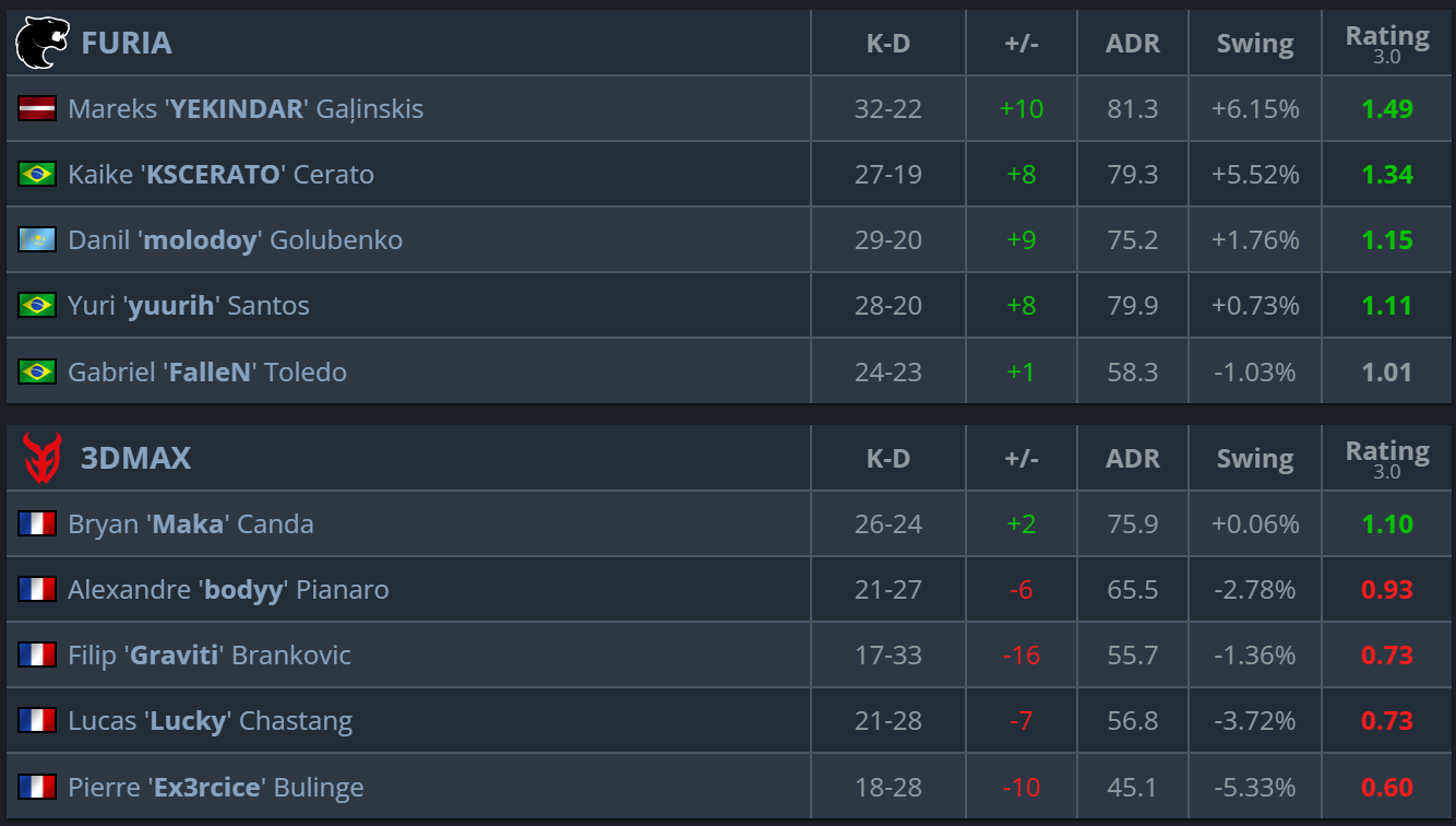After switching to Dust2, FURIA kept the momentum — aggressive entries led by YEKINDAR and perfect reads of their opponents left 3DMAX with no room to respond.