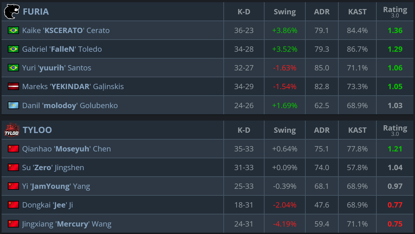The second map was more closely contested, but FURIA maintained their advantage in critical moments. TYLOO stayed competitive almost until the very end, but in key rounds FURIA played more disciplined and managed their economy better, allowing them to close the series without a third map.