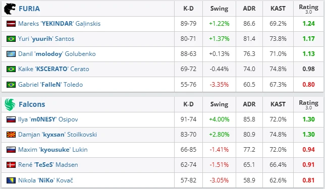 kyxsan’s team looked like the biggest challenge for FURIA. They outclassed Vitality, dominated the group stage, and showed their best form since the roster was assembled. The brightest star was m0NESY, who delivered one of his strongest LAN performances since joining Falcons.