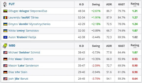 FUT entered the series as slight favorites but were forced to fight for every round. M80 showed flashes of firepower, especially on their map pick, yet ultimately fell short in the closing stages.