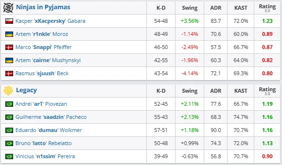 The second match delivered even more drama. Legacy’s victory over Ninjas in Pyjamas signals that the Brazilian side are more than just Swiss participants — they are capable of disrupting established names.