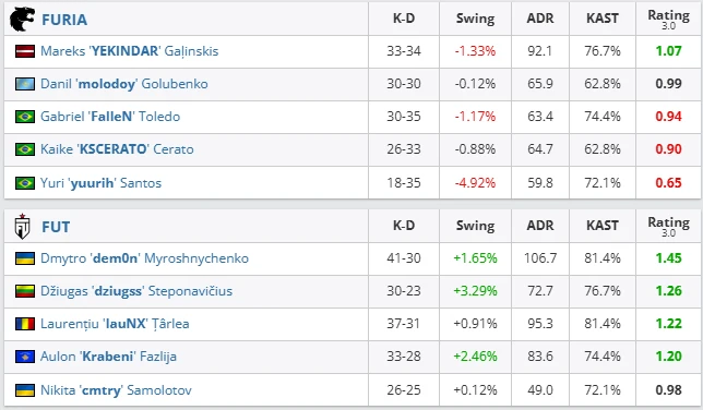 FUT approached the series with little external pressure but clear internal confidence. Their recent form showed a team willing to play assertively on LAN, relying on pace, sharp trading, and disciplined mid-round calls. Against FURIA, they embraced the underdog role and played without hesitation.
