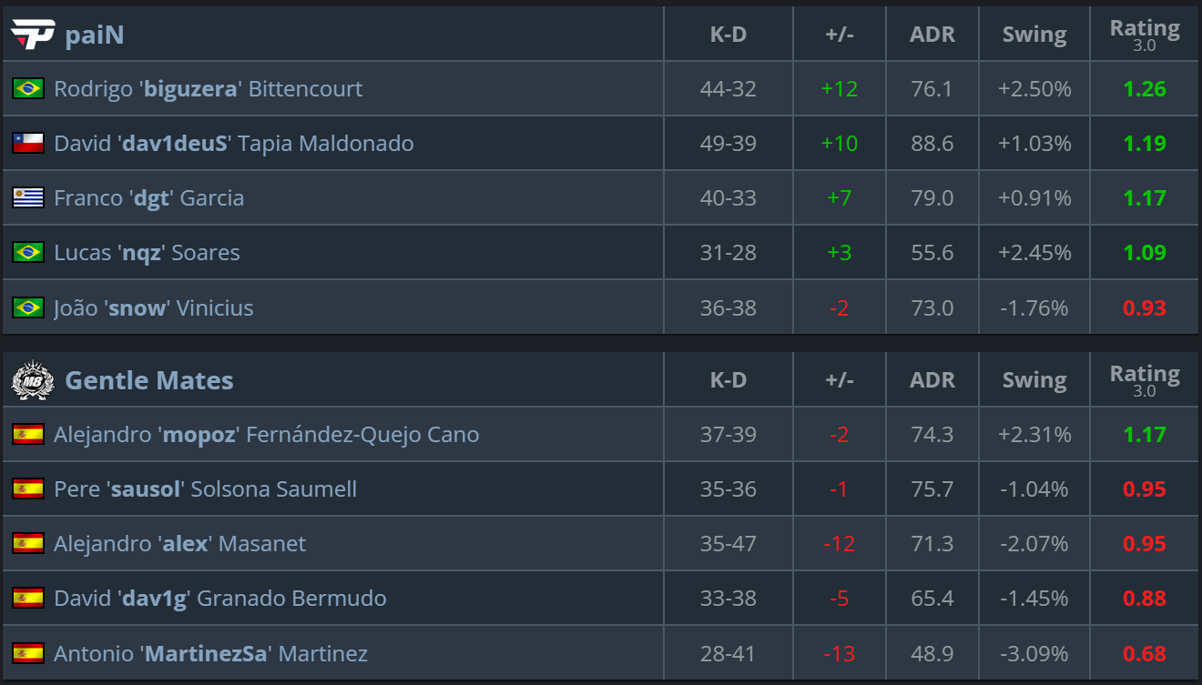 VRS rating after the match — paiN vs Gentle Mates