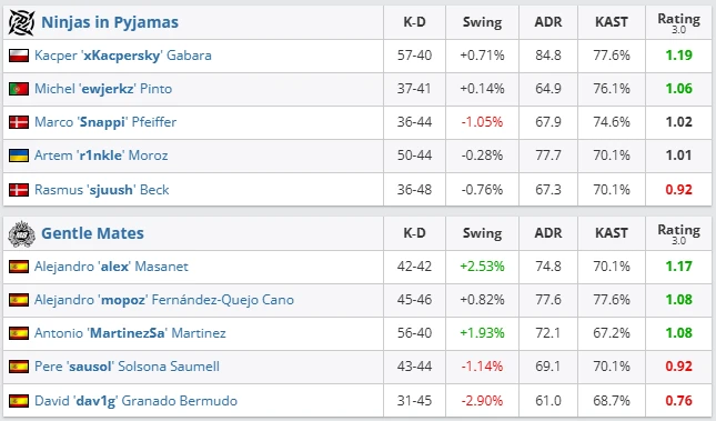 The decider turned into a mental endurance battle. Gentle Mates read NiP’s rotations perfectly, breaking their setups and maintaining momentum. mopoz and MartinezSa came up big in crucial rounds, closing the map 13–10 and eliminating NiP with a 0–3 record.