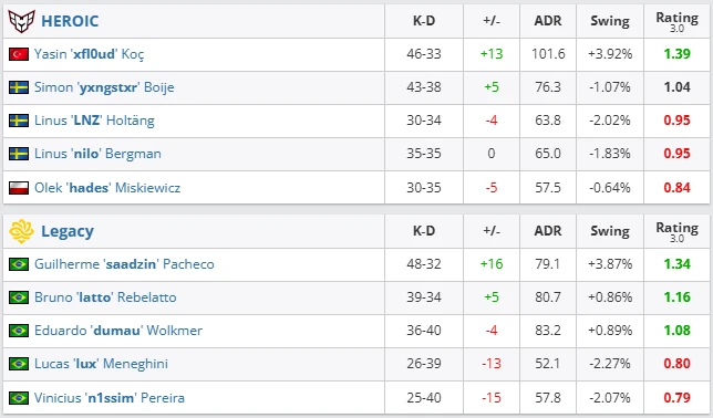 For Legacy, this is a major breakthrough — not only strengthening their VRS position but nearly guaranteeing a direct invite to the next Major. For Heroic, the loss is a setback that could prove costly in the qualification race.