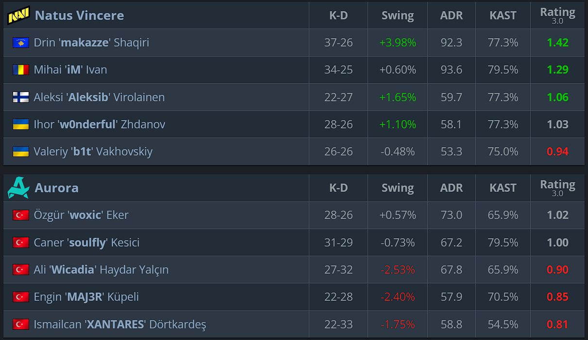 Natus Vincere delivered a cohesive and highly disciplined series, not allowing Aurora to impose their style either on their own pick or on Nuke. The key advantage for NaVi was a more stable structure, better execution in crucial rounds, and a strong individual performance from makazze. Aurora remained competitive but did not find enough opportunities to turn even a single map in their favor. As a result, Natus Vincere advance directly to the semi-finals, while Aurora drop to the quarter-finals.