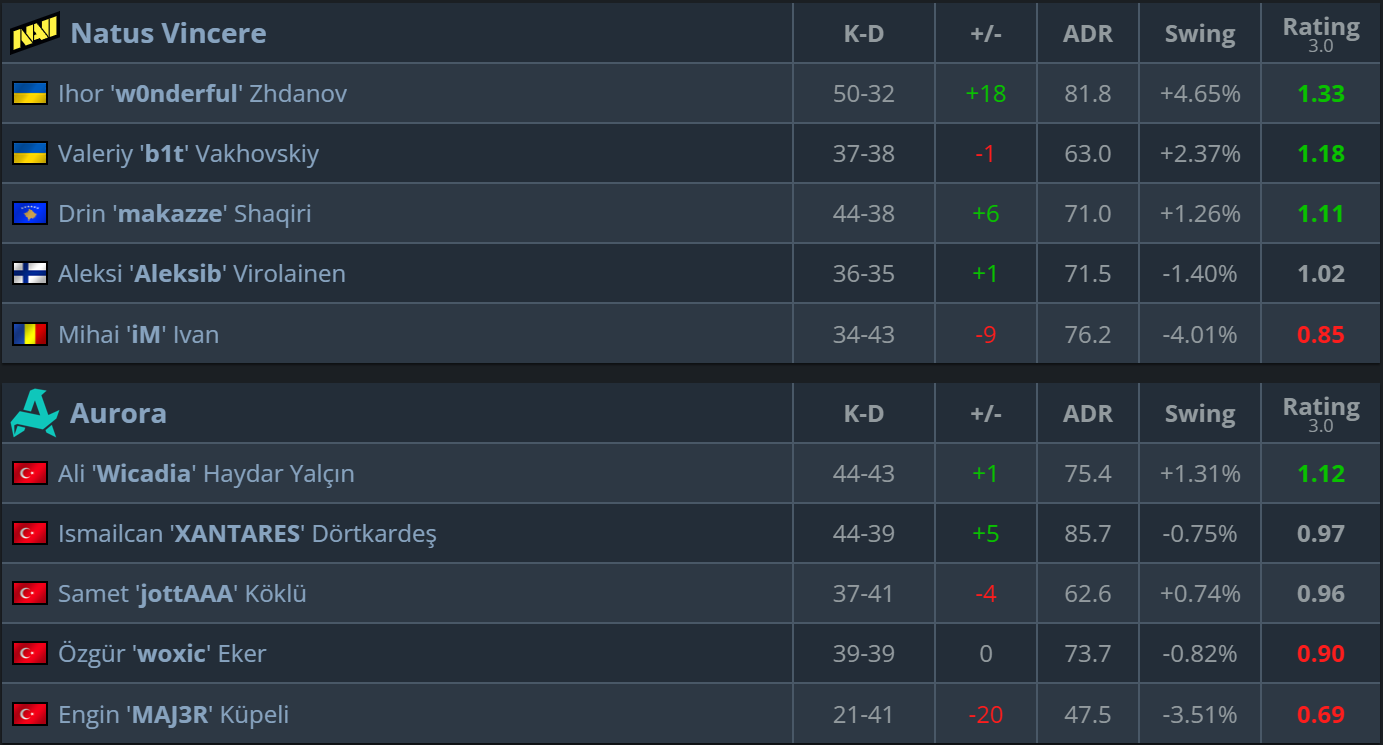 NAVI demonstrated resilience and experience, turning a disastrous start on Nuke into a confident series victory. w0nderful and makazze proved that this roster is capable of fighting for the championship. Aurora, despite a strong start, once again lost momentum in decisive rounds — now the Turks must perform under maximum pressure to avoid an early exit from the tournament.