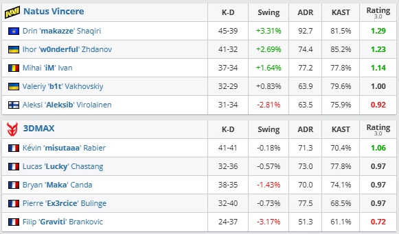 The result also affected the Valve Regional Standings (VRS). Natus Vincere gained +11 VRS points, strengthening their position around the top of the rankings. Meanwhile, 3DMAX lost −7 VRS points, slightly weakening their position in the standings after narrowly missing the playoffs.