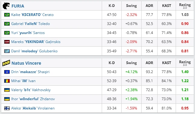 NAVI showcased a mature and flexible approach. After dropping Inferno, the team quickly adjusted, improved map control, and punished FURIA for every overextension. FURIA, on the other hand, lost effectiveness once their initial pressure stopped working. Individual flashes from KSCERATO and FalleN could not compensate for the overall breakdown in structure.
