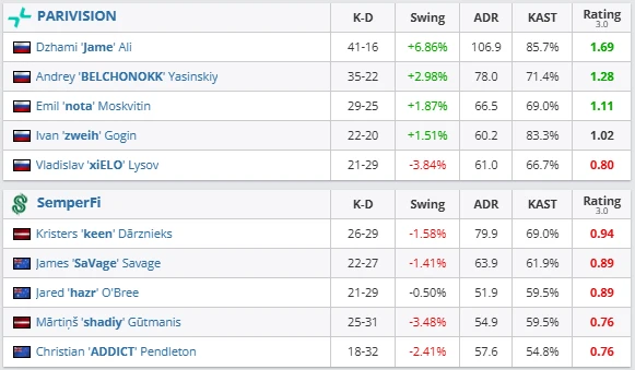 Dust2 was more competitive, but the outcome never truly felt in doubt. SemperFi fought back into the game through individual moments, yet PARIVISION consistently won the key late-round situations. Jame delivered a standout series overall, finishing with a 1.69 rating, 106.9 ADR, and nearly 86% KAST across two maps. His impact in clutch scenarios sealed Dust2 and the series.