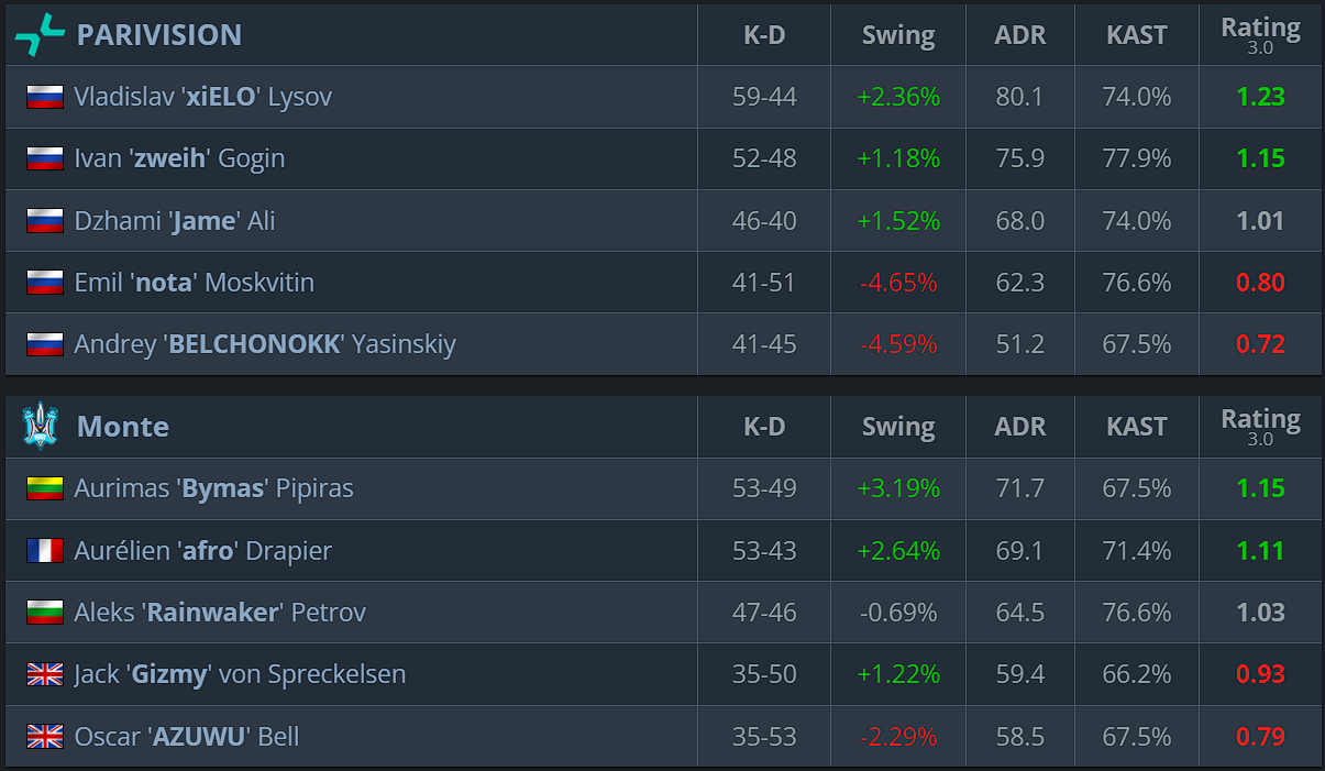 Monte took advantage of PARIVISION’s drop in form and delivered a more stable performance in the decisive moments of the series. The tournament favorite looked inconsistent, made mistakes in economic management, and lost control on the deciding map. As a result, Monte sensationally advance to Stage 2, while PARIVISION find themselves one step away from elimination.