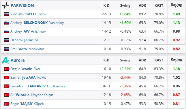 PARIVISION delivered one of the most mature performances in their career: disciplined setups, consistent trading, and complete control in the second half. Aurora, in contrast, looked unusually shaky — failed retakes, chaotic pistol-round decisions, and no rhythm on the T-side. PARIVISION not only defeated a tournament favorite but also flipped the entire psychology of the 1–1 pool: they are now strong contenders for 3–1, while Aurora are on the brink of elimination.