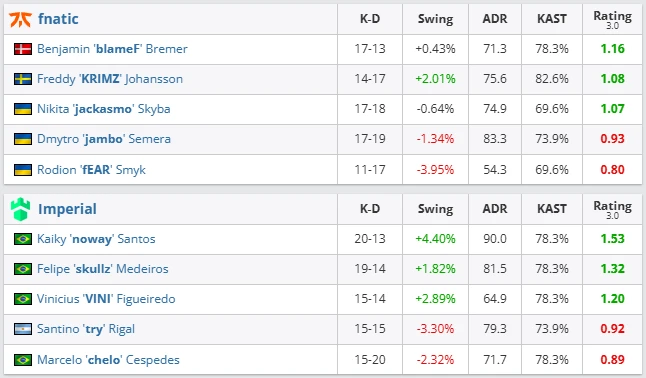 Imperial continue their quiet but stable run through Budapest. Against fnatic, they looked prepared for every scenario: well-structured rounds, coordinated retakes, and no panic even in disadvantaged situations. fnatic once again revealed their biggest weakness — poor conversion of advantages. They lost every crucial round in the second half, including two 2v2s and one 5v4. At a Major, that’s fatal.