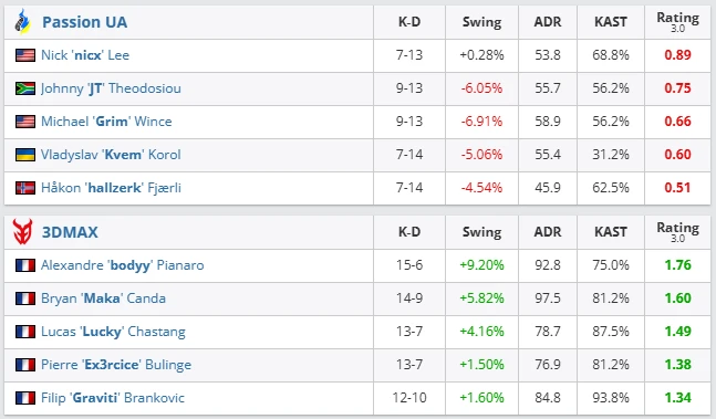 3DMAX played a near-perfect game, while Passion UA delivered one of their worst Major performances. The Ukrainian roster failed to find any workable plan on Train: poor sense of tempo, failed pushes, lost duels, and a complete breakdown in communication. 3DMAX looked like a top-15 team: clear priorities, fast adaptations, and full map control. bodyy delivered a masterclass in both leadership and individual play.