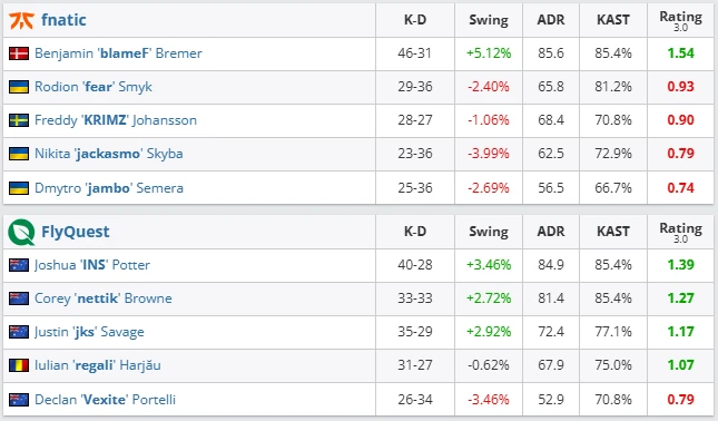 FlyQuest stunned fnatic with a confident 2–0 victory (13–11 on Inferno, 13–11 on Mirage). The Australians demonstrated great composure, using strong executes and smart mid-round calls to close both maps. Joshua “INS” Potter led the charge with a 1.39 rating, while nettik (1.27) and jks (1.17) supported with consistency across both maps. For fnatic, blameF was once again the standout performer (1.54 rating), but his individual brilliance wasn’t enough. The team struggled with late-round coordination and failed to contain FlyQuest’s fast-paced approach.
