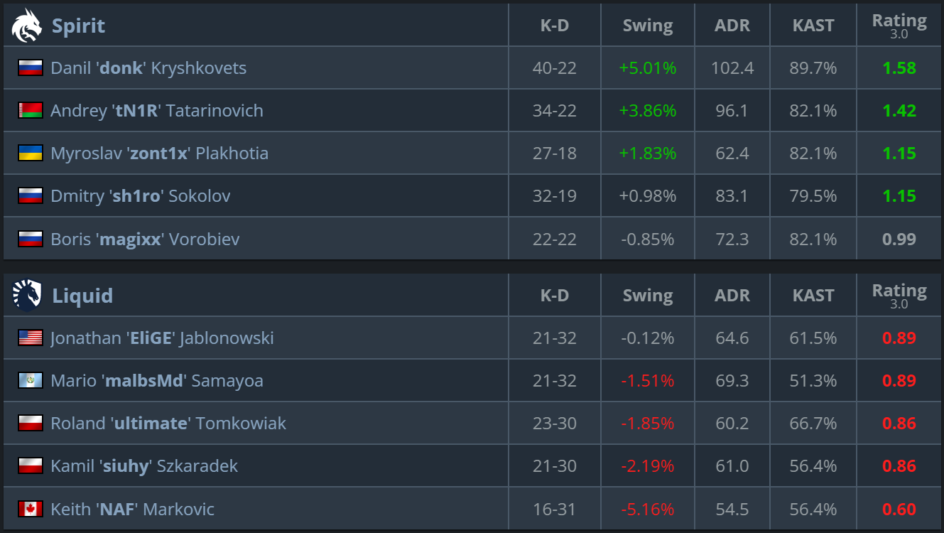 On the second map, Liquid looked much more alive and managed to put up a fight. Even so, in the closer match Spirit handled the decisive rounds better and closed out the series without the need to go to a decider.