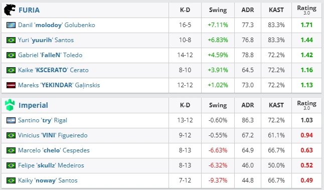 FURIA continue playing like one of the top contenders of the Major. They gave Imperial no chance: overwhelming duel control, organized defensive rotations, and a calm closing phase. Molodoy again showed why he is considered one of the biggest revelations of the season.