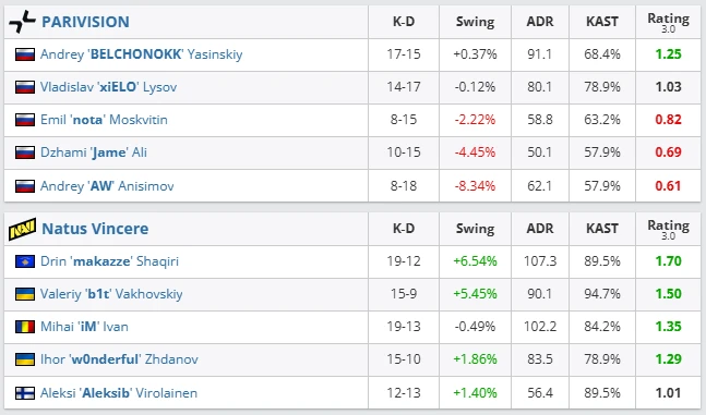 NAVI closed the day with a confident victory. Makazze was flawless in duels, while the team read every rotation and dominated the economy. PARIVISION tried to keep up early, but lost key clutches that broke their momentum. The second half became a display of NAVI’s superior structure.