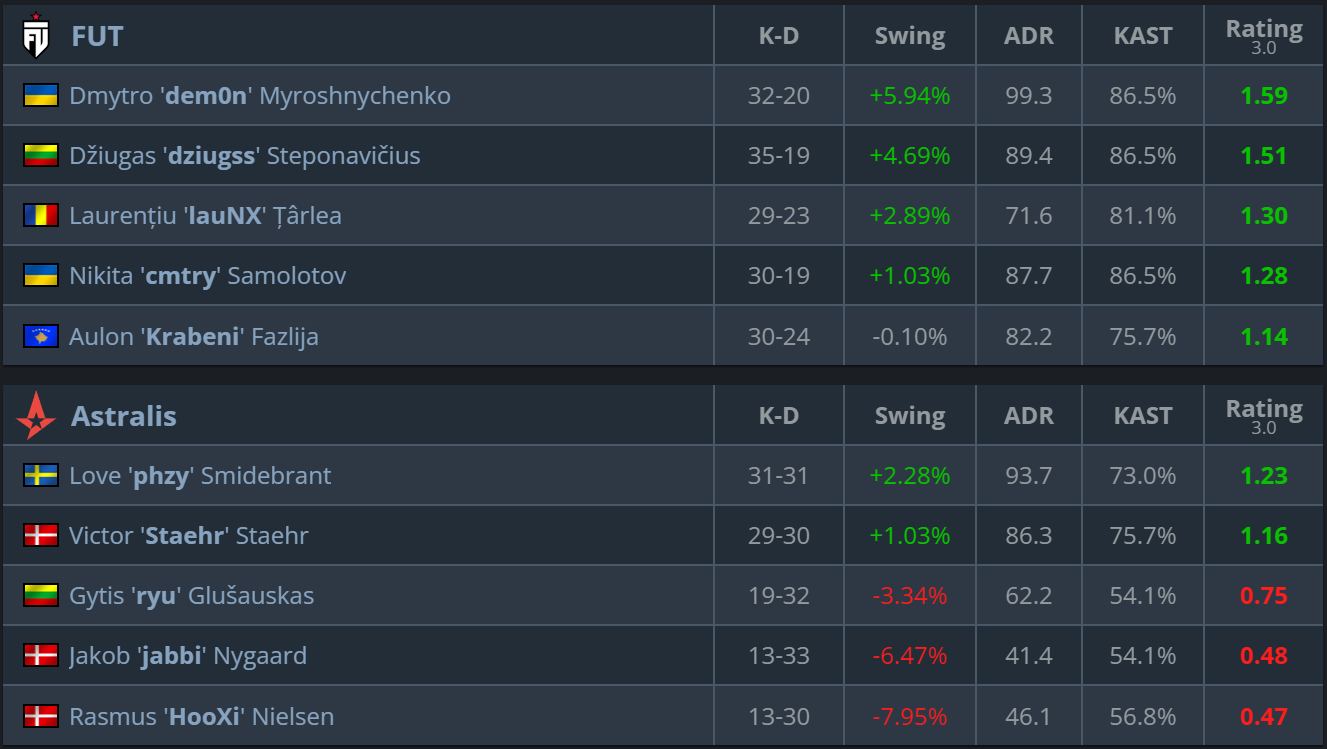 The second map followed a similar script. FUT dominated the macro aspects of the game, while Astralis struggled to find consistent solutions on defense and in retake scenarios.