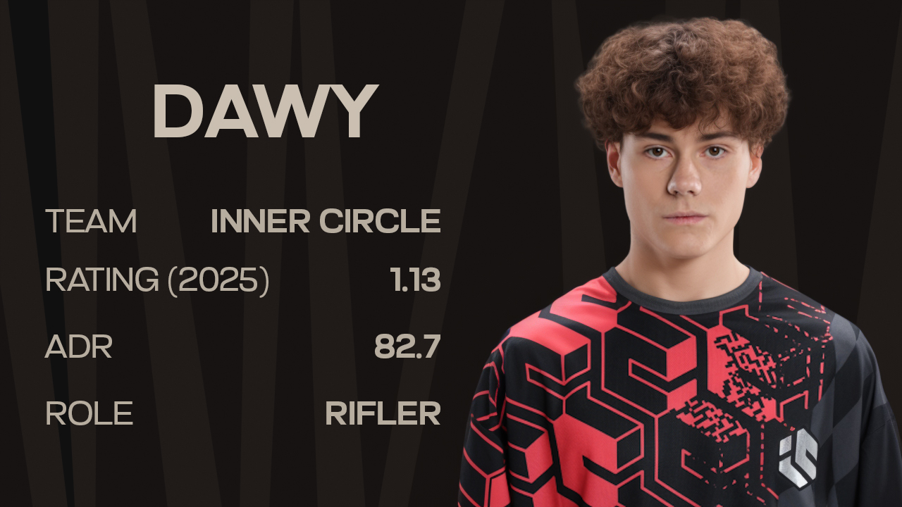His rise has been built from the ground up. Starting in lower-tier teams under the DASH and TNL banners, Dawy steadily pushed his way forward alongside a core that grew together rather than being assembled overnight. That progression culminated in 2025, when Inner Circle broke into international relevance and earned appearances at high-level events, including ESL Pro League Season 22.