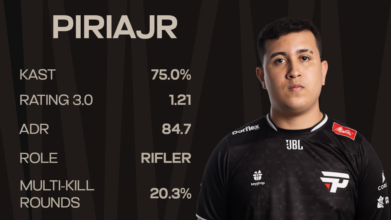 That consistency ultimately led to the biggest move of his career. In January 2026, paiN Gaming brought piriajr in on loan — effectively signing the statistical #1 player in the world by rating, if all teams and regions are considered rather than just the top-20. It was a bold move, but one fully supported by data.